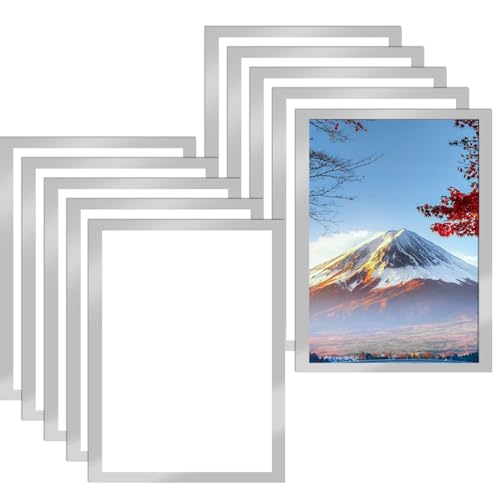 Comzantor 10 stycken magnetiska fotoramar A4, magnetisk ram, vikbar, diamantmålningsram, magnetisk informationsram, självhäftande för dokument, affischer och mer i DIN A4-format (silver)