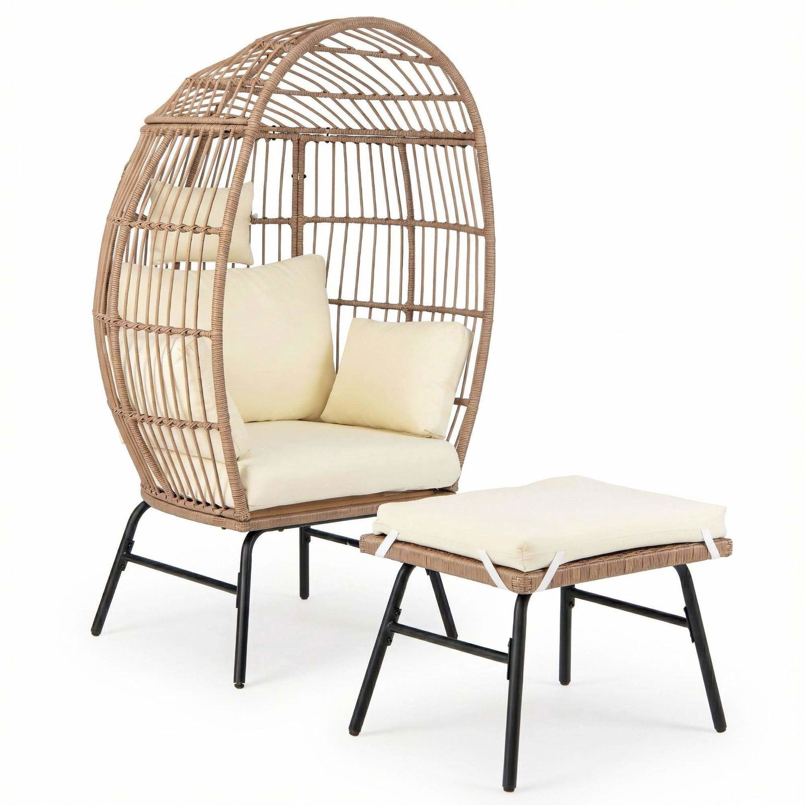 Rotting Äggfåtölj med Fotpall – Vadderad, Inomhus/Utomhus