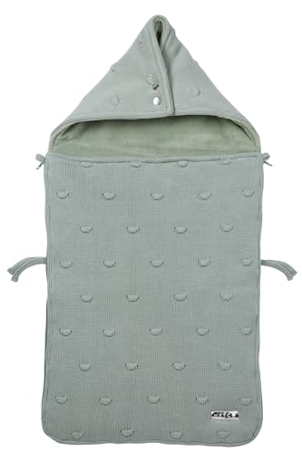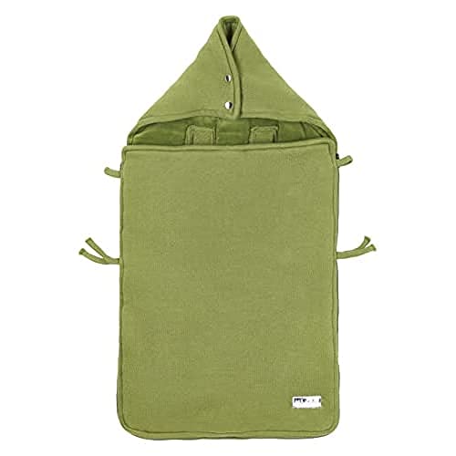 Meyco Fotsäck bilstol baby – sammetslen mjuk plysch fodrad – stickad basic – avokado