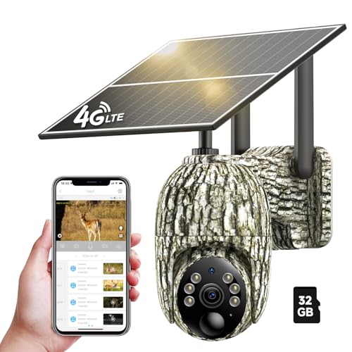 NUASI Fotskrapa med SIM, 4G LTE jaktkamera med minneskort, 2K videokamera utomhus med solpanel, färg nattsyn, 2-vägsljud, PIR-detektering, IP66, 360°