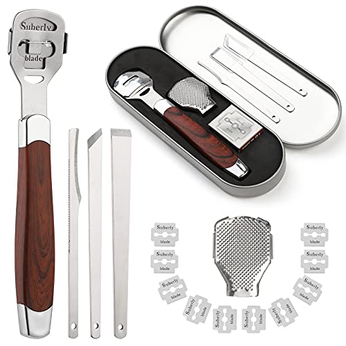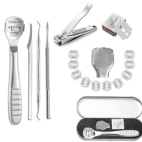 Pedikyr förhårdnadsrakapparatset, hyvel fotskrapa, fotfil förhårdnadsborttagare, fötter, rostfritt stål, fotrasp, hård hud, häl, förhårdnadsborttagning för hand, fötter, fotvård med 10 reservblad