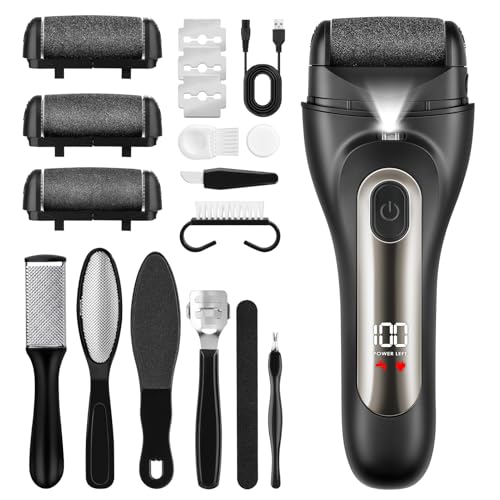 GlasFlength Elektrisk fotskrapa, IPX7 vattentät elektrisk fotslipmaskin, 3 rullar, elektrisk fotrivjärn, 3 hastigheter, kraftfulla elektriska fötter, för död hud, förhårdnader (svart)