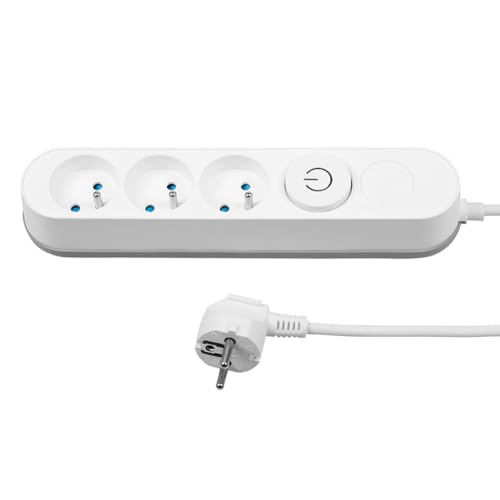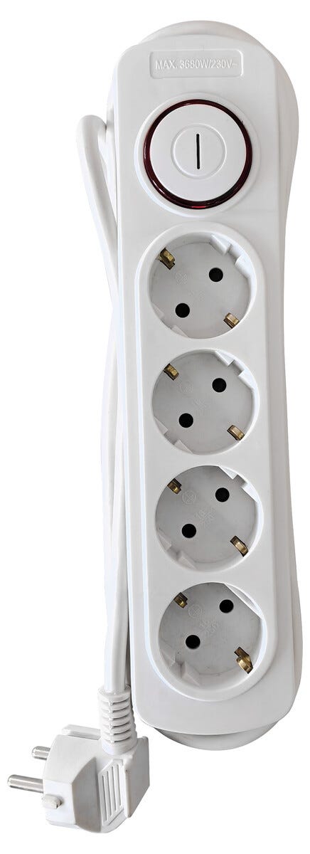 ITENSE - grenuttag, 3-uttagsblock - 3-uttag - 16 A - med fotströmbrytare - HO5VV-F 3G1mm² kabel - färg: Vit - kabellängd: 1 m - spänning: 230 V - Max effekt: 3 680 W