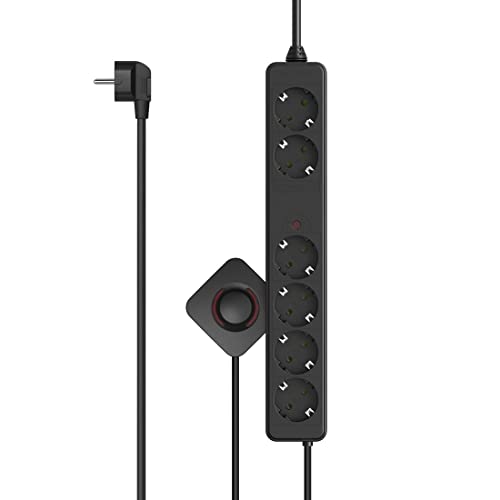 Hama grenuttag 6-vägs, med fotströmbrytare, 3 m (grenuttag med strömbrytare, 6-vägs grenuttag, flera kontakter, med kontaktskydd, belyst strömbrytare, 45°) svart