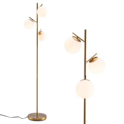 COSTWAY Golvlampa med 3 lampor, modern fristående golvlampa med praktisk fotströmbrytare, E27-glödlampa bas och robust metallmast, lä för vardagsrum, arbetsrum och sovrum