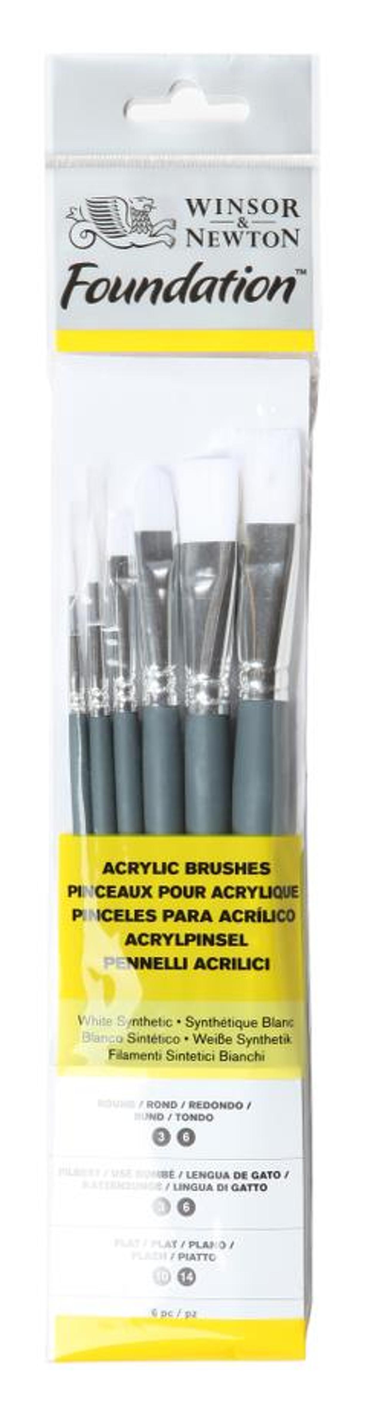 Winsor & Newton 5295025 foundation penseluppsättningar, oljepensel, 6-pack, rundpensel nr 3, 6, platt pensel nr 10, 14, Filbert nr 3, 6 – kort skaft