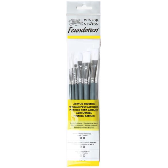 Winsor & Newton 5295015 Foundation pensel set, 6 pensel, kort skaft rund nr 2, 3 och 5, platt nr 3, 5 och 6