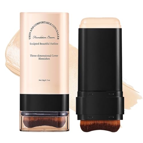 Mångsidig foundation – krämfärgad foundation med pensel – långt huvud och konturpinne – vattentät – naturlig matt finish (01Cream)