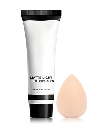 Erinde Matt vit foundation för halloween, hållbar färgkorrigerande foundation med sminksvamp, lämplig för halloween, cosplay clown, karneval, teatermakeup
