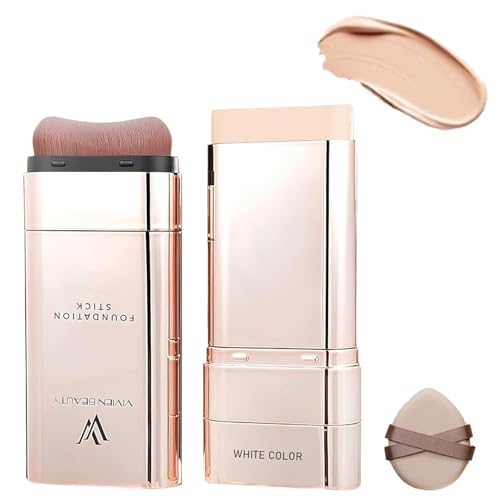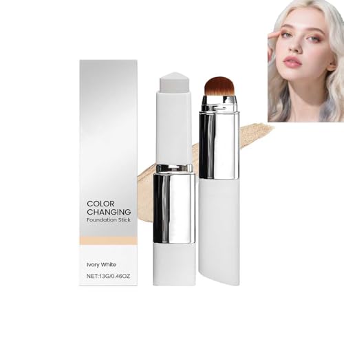 Chartming Color Changing Foundation Stick,2-in-1 Foundation Stick with Brush,White Color-Changing Cream,Full Coverage Concealer,Waterproof Long-Lasting Sweatproof for Natural Makeup(Ivory)