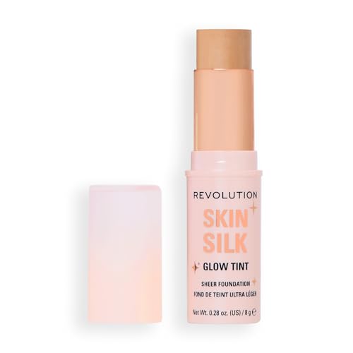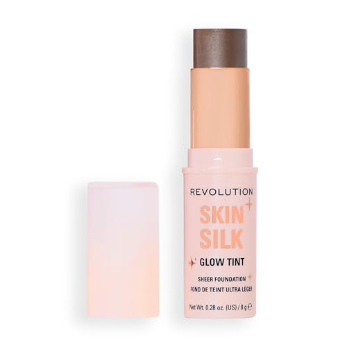 Revolution hud silke lysande nyans transparent foundation stick – för strålande hud döljer ojämnheter och mjukar upp fina linjer, medelbrun varm, 8 g