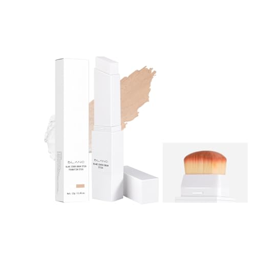 Blanc Cover Cream Stick 2-i-1 färgskiftande foundation med full täckning, lätt formel för felfri hud, inkluderar borstborsthuvud, lämplig för alla hudtyper