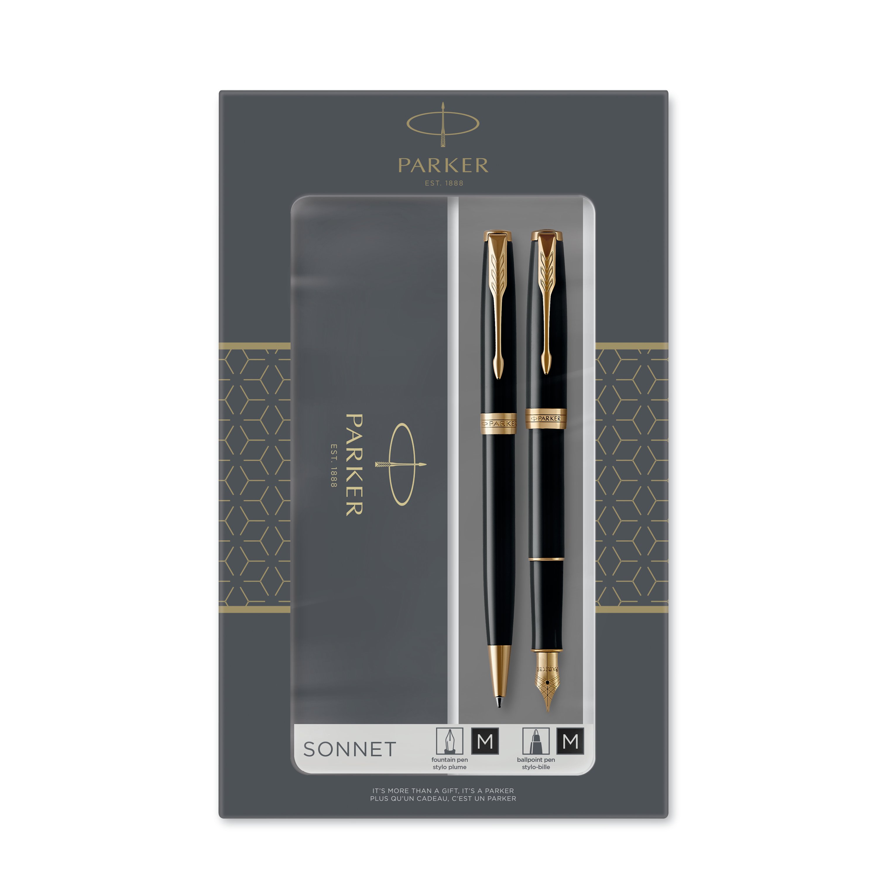 Parker - Sonnet Duo Gift Set with Ballpoint Pen & Fountain Pen - Gloss Black with Gold Trim