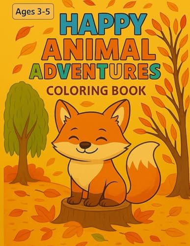 Happy Animal Adventures Coloring Book: Fun and Easy Forest Animal Coloring Pages for Kids Ages 3-5 — Includes Fox, Bunny, Bat, Squirrel and More!