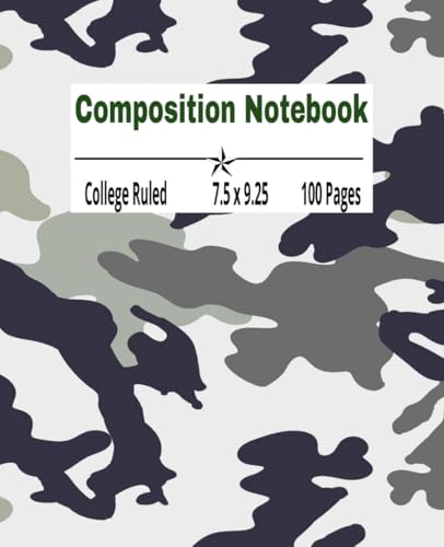 Composition NoteBook- Military-themed: Stand tall and stay sharp with this Army design book for students 7.5 x 9.2inches compact size best to jot down notes, journaling, or home study.