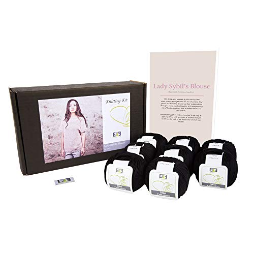 DesignEtte Lady Sybils vuxna stickningskit 100 procent merceriserad egyptisk bomull ull garn bollar och mönster i en uppsättning nybörjare starthantverk pack låda 50 g 127 m/5 lager svart 7, 3XL