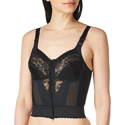 Exquisite Form 5107565 Bygellös lång bh med spets och full täckning, rygg- och hållningsstöd, framknäppt, gör att du ser slankare ut, Svart, 105E