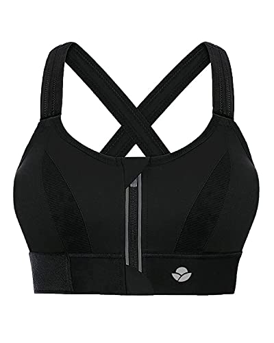 YIANNA Dam sport-BH starkt grepp stora bröst framknäppt yoga bustier utan bygel vadderad, svart, M