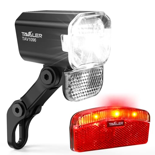 Tavaler E-cykellampa fram 60 lux | Ebicykellampa med reflektor och StVZO-godkänd | LED E-cykelstrålkastare 6–48 V | E-cykel bakljus för bagagehållare bakljus