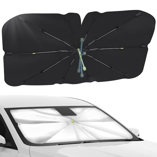 KEELYY Solskydd bil framruta, 140 x 70 cm bil vindruta parasoll, bil vindruta skydd inomhus, vindruteskydd vikbar vindruta solskydd för sommar