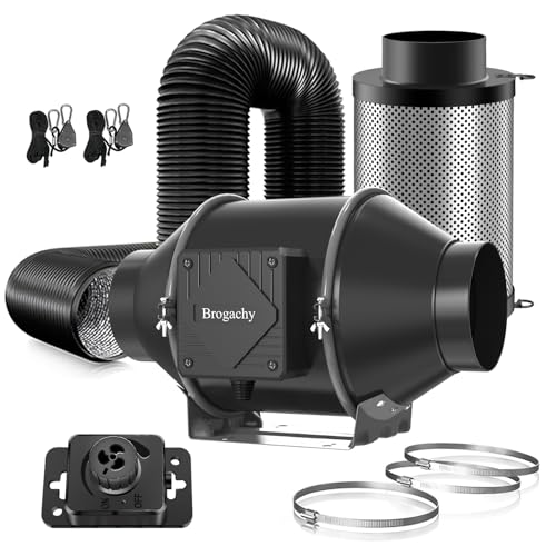 Brogachy 100 mm justerbar rörfläkt 363 m³/h, frånluftsfläkt 3000 RPM, trefas EC-motor, med luftkolfilter och frånluftsslang, för tillväxttält, hydrokulturer, hemmabruk.