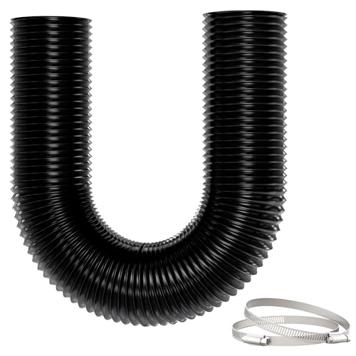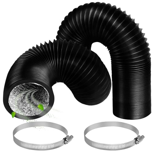75 mm frånluftsrör, 5 m PVC frånluftsslang svart flexslang frånluftsslang med 2 slangklämmor rostfritt stål för mobil luftkonditionering, torktumlare, frånluftsfläkt, ventilationssystem