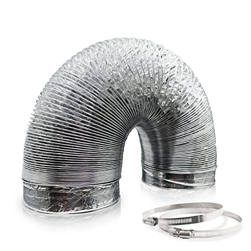 ComPDCVD frånluftsslang 100 mm längd 3 m PVC flexibel aluminiumrör slang aluminium aluflex-slang med 2 slangklämmor rostfritt stål för luftkonditioneringsapparater mobil luftkonditionering torktumlare