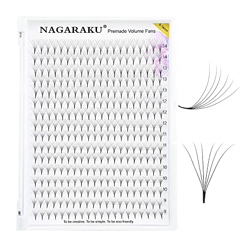 NAGARAKU 8D Förgjorda Volymfransar 320 Fans Volym Premade Fans Lång Stjälk Tunn Bas Spets Naturliga Fluffiga Fächer Fransar Fransförlängning Ögonfrans Ryska Svart 16 Rader Box XL (0.07 D 9-14mm)