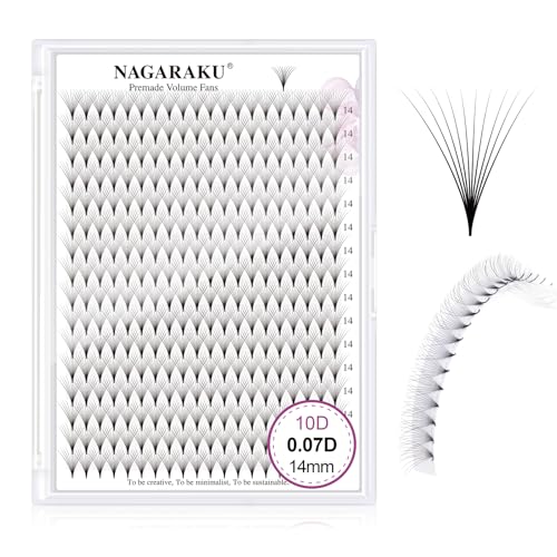 NAGARAKU 10D Förgjorda Volymfransar 320 Fans Volym Premade Fans Lång Stjälk Tunn Bas Spets Naturliga Fluffiga Fächer Fransar Fransförlängning Ögonfrans Ryska Svart 16 Rader Box XL(0.07 D 14mm)