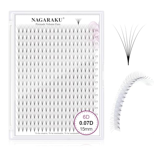 NAGARAKU 6D Förgjorda Volymfransar 320 Fans Volym Premade Fans Lång Stjälk Tunn Bas Spets Naturliga Fluffiga Fächer Fransar Fransförlängning Ögonfrans Ryska Svart 16 Rader Box XL(0.07 D 15mm)