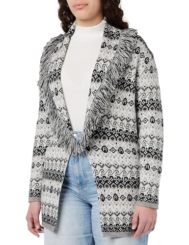 ebeeza Dam, lång, stämningsfull fransjacka med stickad trim, svart, vit, storlek XL/XXL, svart-vit, XL