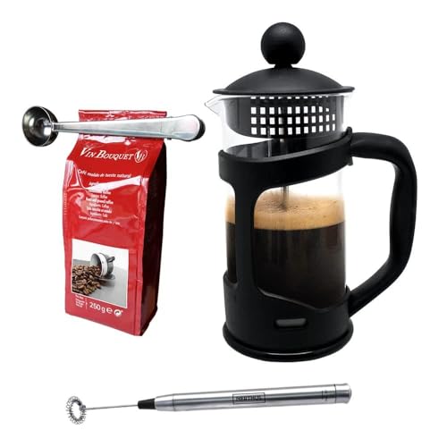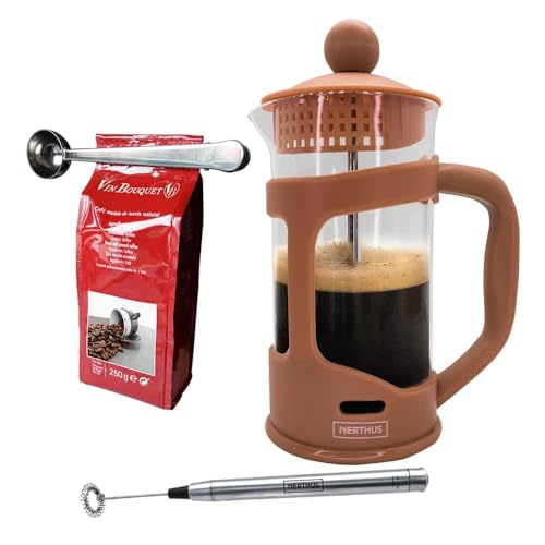 Nerthus FIH 1131 set fransk press 350 ml laxrosa mjölkskummare mjölksked och kaffetång
