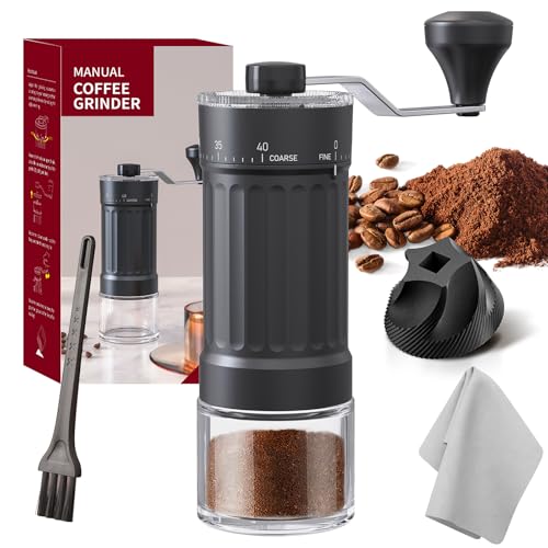 HOTUT Manuell kaffekvarn, med hög precision keramisk samtida konisk burr, handkaffekvarn med 30-graders justerbara inställningar, för Espresso, häll, mockakannor, fransk press