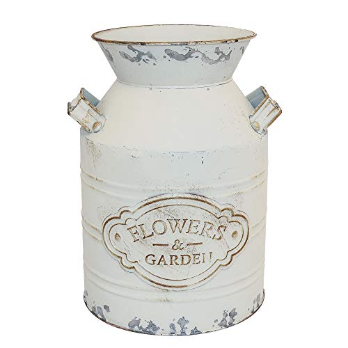 Fovasen Rustik galvaniserad mjölkburk kanna vas, metall shabby chic vas primitiv fransk lantlig stil bondgård vas dekorativ blomhållare för vardagsrum, sovrum, kök – 21 cm