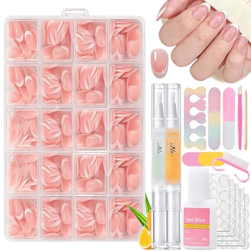 ZAHRVIA Självhäftande Naglar, Kort Ellipser, Franska Falska Naglar, Press-On Naglar för Kvinnor, Flickor, Nagelkonst, Kort, 120 St, Hudfärg, Mjuk Gel (Franska-Korta Ellipser)