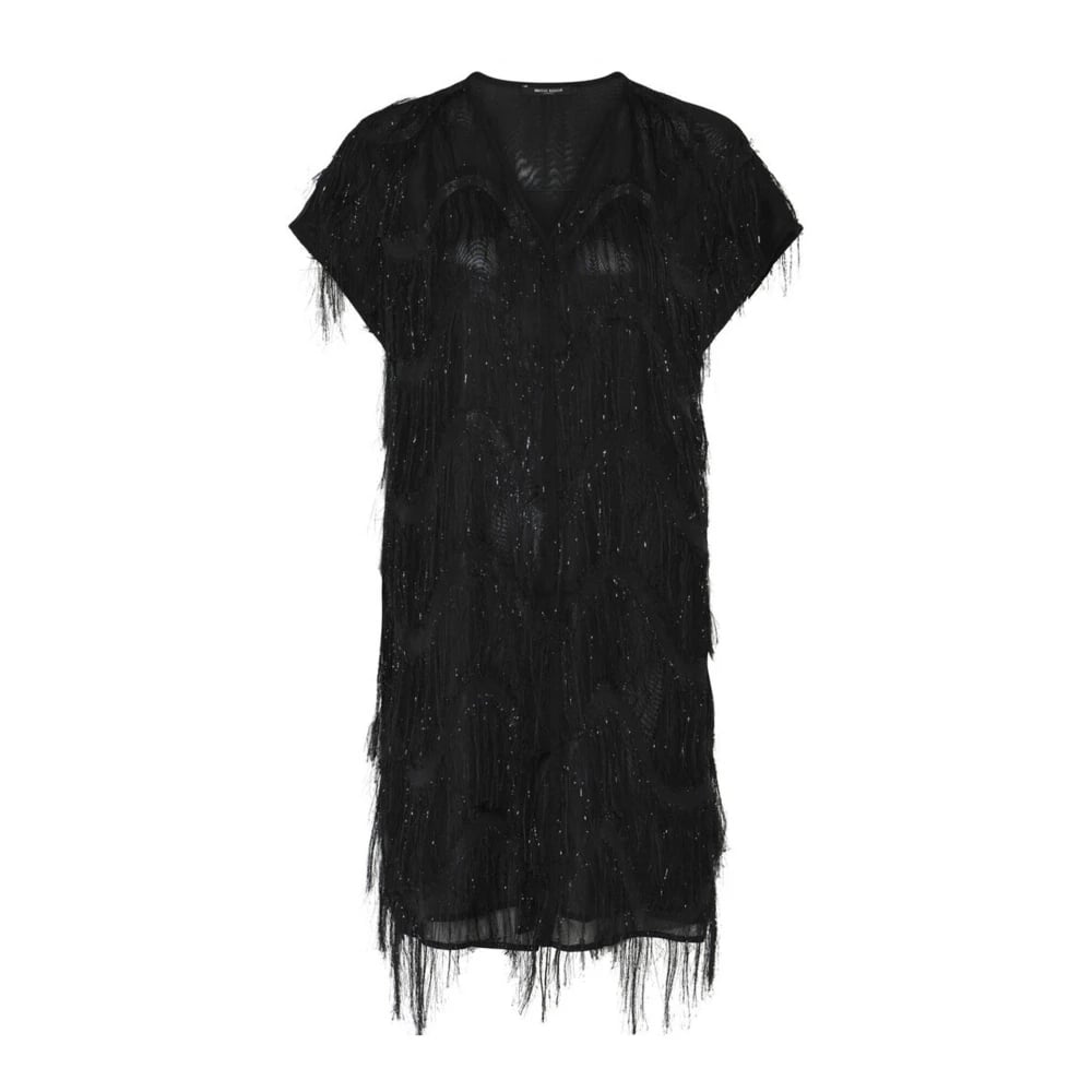 Bruuns Bazaar, Klänningar , Dam, M, Polyester, Svart fransklänning