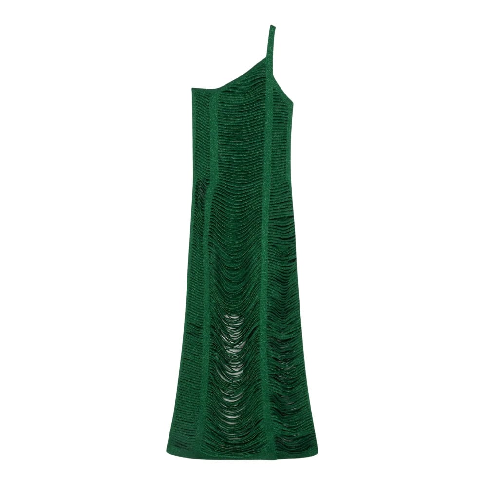 Circus Hotel, Klänningar , Dam, 2Xs, Polyester, Grön Enaxlad Fransklänning