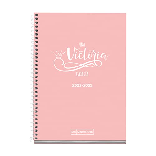 MIQUELRIUS - Agenda september 2022 juni 2023 - Dag Sida - Aktiv storlek 11,7 x 17,4 cm - Tvåspråkig: spanska, engelska - School - Rosa fras