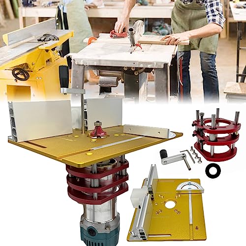 Överfräslyft med Toppplatta, Precisionsfräslyftsystem i Aluminium med Geringsmätare, Insatsplatta för Träbearbetning Av Fräsbord och överfräslyftsats för Slitsning, Trimning (Guld)
