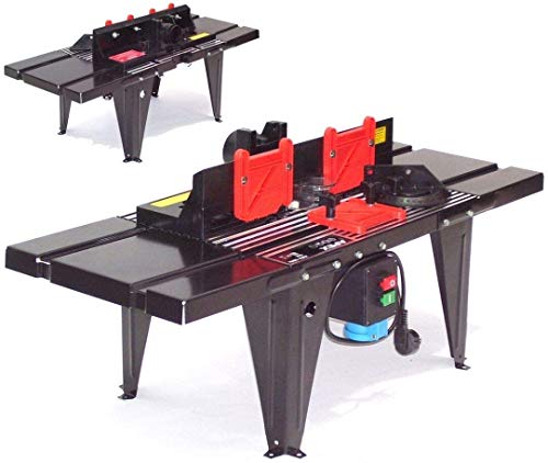 Fräsbord för överfräs inläggsplattor-set, överfräsbord och bordsfräsmaskin, router-bord, maximal lyft 51 mm, bordsfräs för spår tapp skärning grovning och avfasning (svart + röd)