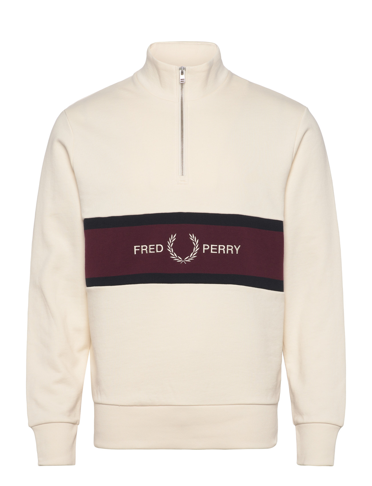 Fred Perry Embroidered Panel Half Zip Swe - Cream - XL