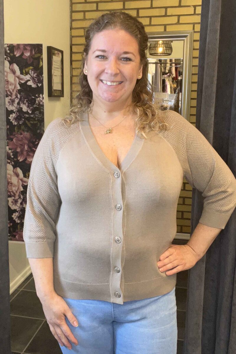 Freequent Claura Cardigan Dam Simply Taupe W Black