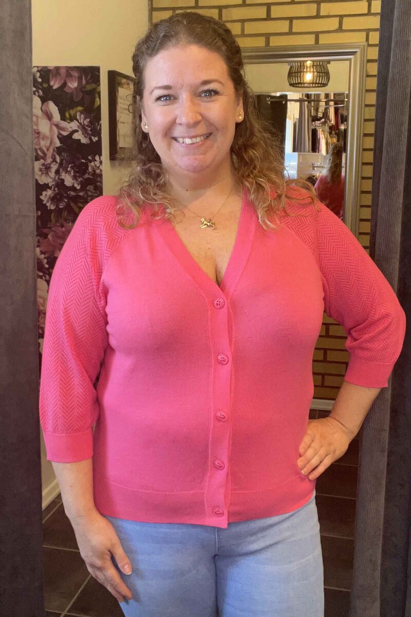 Freequent Plain Short Cardigan Dam Hot Pink