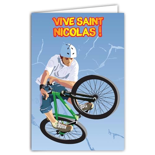 Öppningskort levande Saint Nicolas Happy Party 6 december cykelhjälm BMX freestyle sport extrem pojke tonåring ung man vän vän fashionabla sneakers - med vitt kuvert format 12 x 17,5 cm