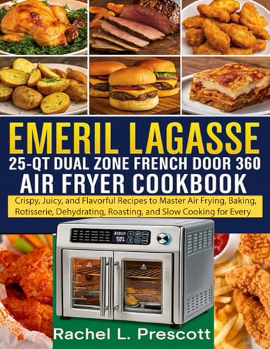 EMERIL LAGASSE 25-QT DUAL ZONE FRENCH DOOR 360 AIR FRYER COOKBOOK: Crispy, Juicy, and Flavorful Recipes to Master Air Frying, Baking, Rotisserie, Dehydrating, Roasting, and Slow Cookingfor Every Meal