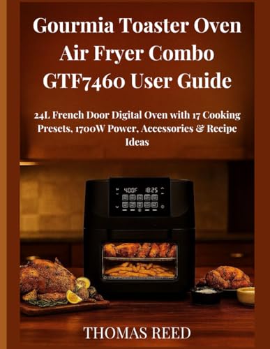 Gourmia Toaster Oven Air Fryer Combo GTF7460 User Guide: 24L French Door Digital Oven with 17 Cooking Presets, 1700W Power, Accessories & Recipe Ideas