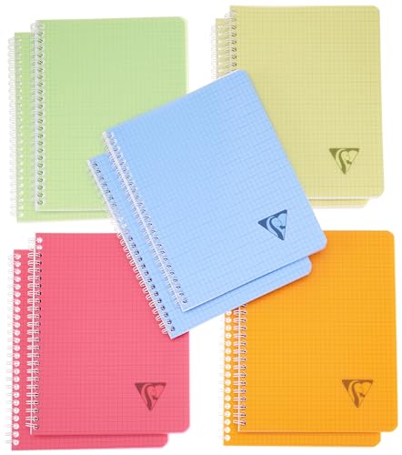 Clairefontaine 328535C Collection Linicolor FRESH Lot de 10 Carnets à Spirale - 11 x 17 cm - 100 sidor Petits Carreaux - Papier Blanc 90 g - Couverture Polypro Transparent - Couleurs Aléatoires