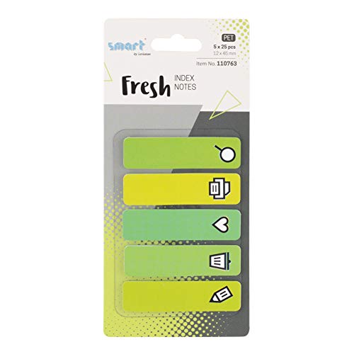 smart by Leviatan Smart 110524 Fresh klisterremsor pagemarkör index självhäftande markörer film textränder PET-film 12 x 45 mm 5 x 25 stycken ränder smimotikon
