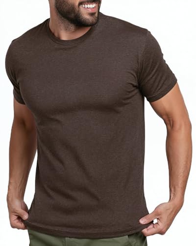 INTO THE AM Premium Men's Fitted Crew Neck Plain Essential Tees - Modern Fit Fresh Classic Short Sleeve T-Shirts for Men (Brown, X-Large)