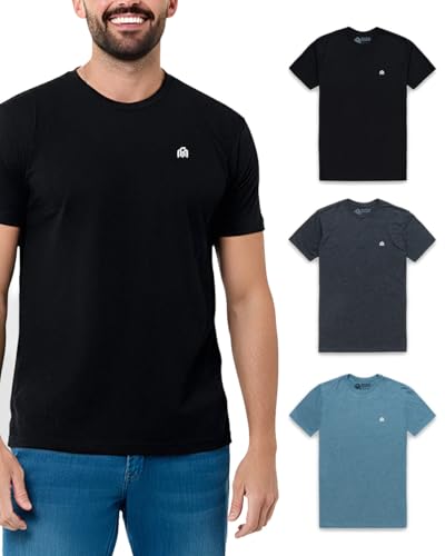 INTO THE AM Men's Fitted Crew Neck Logo Basic Tees 3-Pack - Modern Fit Fresh Classic Short Sleeve T-Shirts for Men (Black/Charcoal/Indigo, Medium)